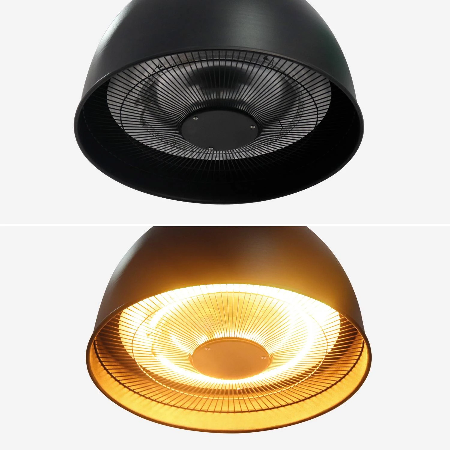Lapland est silencieux, inodore et sécurisé. Sa tête chauffante comporte une grille de protection afin d’éviter les contacts involontaires et tout risque de brulure. Fabriqué en acier recouvert d’une peinture époxy, et doté d’un réflecteur en aluminium, ce parasol chauffant électrique est solide. Il s’accroche au plafond grâce au mousqueton et à la chaîne inclus. La hauteur peut être ajustée grâce à la chaine de 56cm.