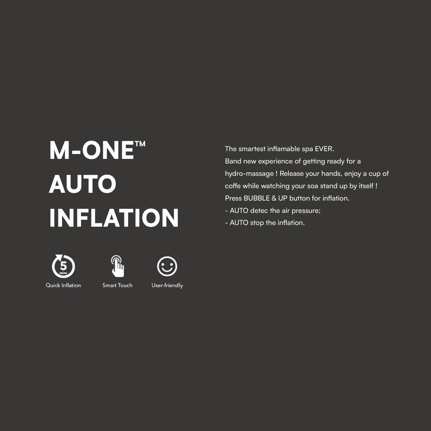 Ce spa est simple d’utilisation. Le boitier de contrôle permet de gérer la minuterie d’économie d’énergie pour enclencher le chauffage et de choisir parmi les 3 vitesses de massage proposées. Le bouton d’auto gonflage M-one offre une installation rapide du spa. Le boitier de contrôle permet aussi d’activer le système anti gel et la sécurité enfant. Pour mieux conserver la chaleur, ce spa est livré avec un couvercle gonflable, une bâche et un tapis.