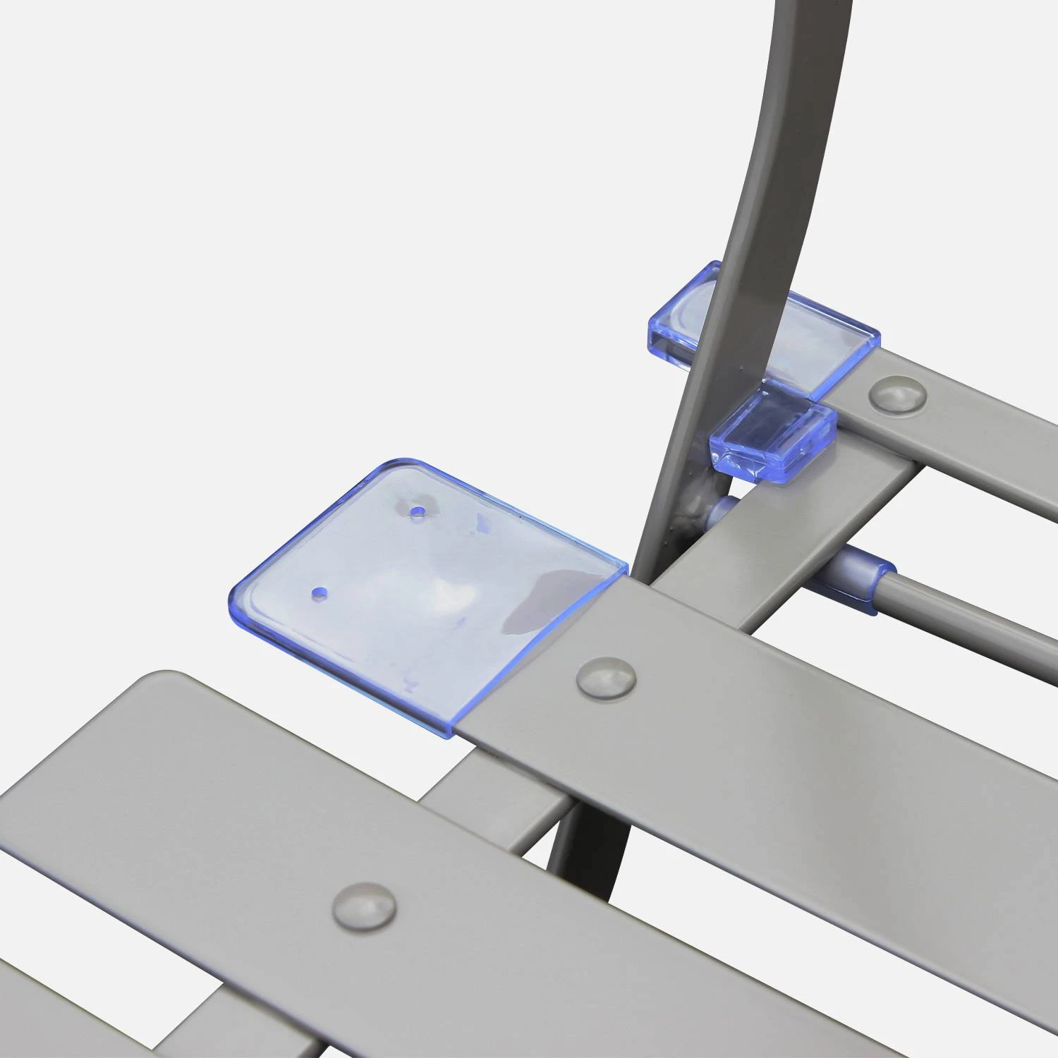 Cet ensemble en acier peint par cataphorèse est pratique. Il est robuste, léger et facile à ranger grâce à la table et aux chaises qui se plient. Pour plus de confort, les lattes des chaises sont incurvées.