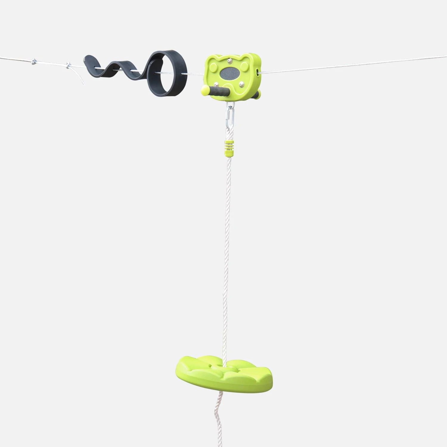 Vos enfants aiment les sensations fortes ? La tyrolienne Alizé est faite pour eux. En transformant votre jardin en parc d’accrobranche, elle leur permet de s’amuser pendant des heures en s’élançant dans les airs. Avec un câble de 30m et pouvant supporter jusque 50kg, cette tyrolienne est destinée aux enfants de plus de 7 ans. Equipée d’une balançoire disque en plastique, de poignées antidérapantes et d’un système d’amortissement à l’arrivée, elle garantit leur sécurité.